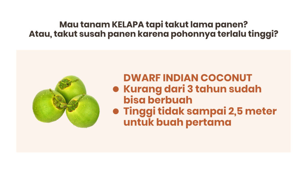 Dwarf Indian Coconut bisa menjadi pilihan anda. Yang tidak suka lama panen dan ingin memiliki tanaman buah yang pendek.